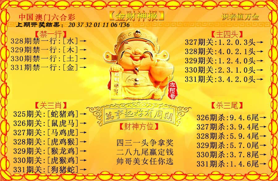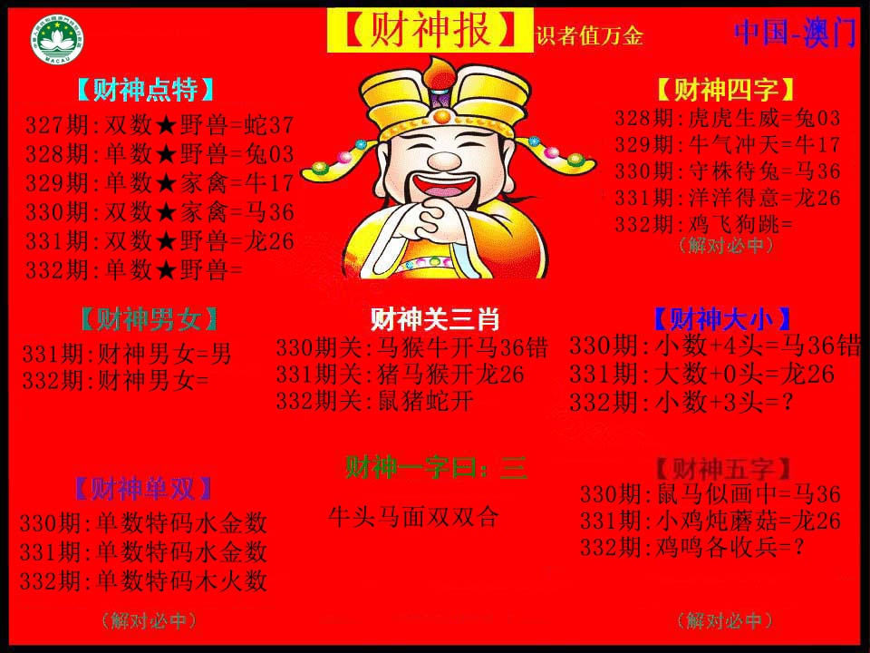 330期: 买啥都中 【天肖天肖天肖】开:马36